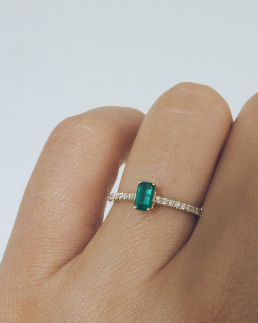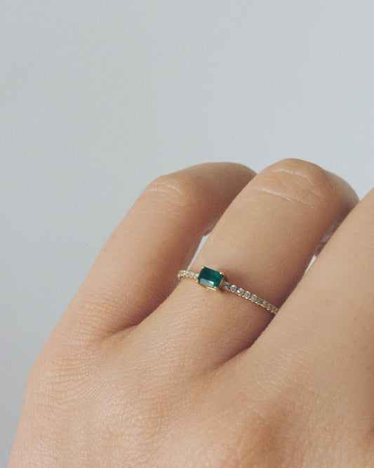 Horizontal Emerald Pavé Diamond Stackable Ring