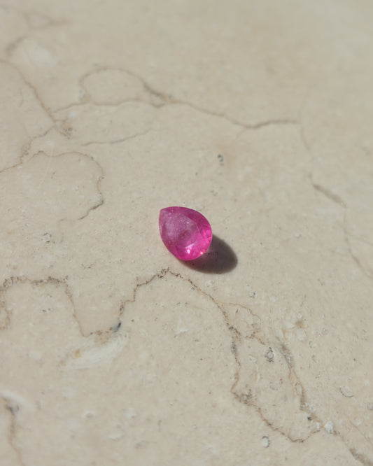 Pear Shape Pink Ruby Half Bezel Solitaire Pavé Diamond Ring