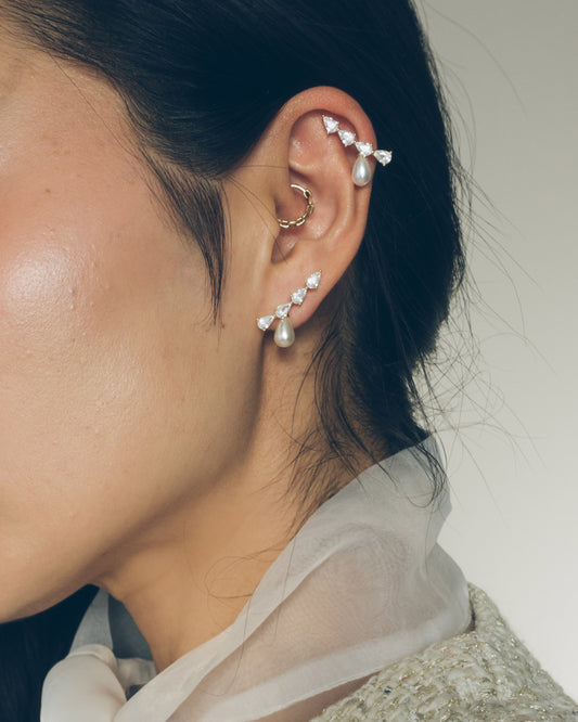 Oversized Pavé Zirconia Pearl Ear Cuff