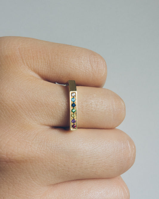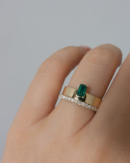 Horizontal Emerald Pavé Diamond Stackable Ring