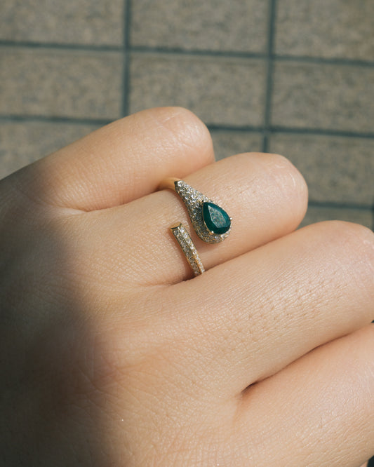 Pear Shape Emerald Pavé Diamond Snake Ring