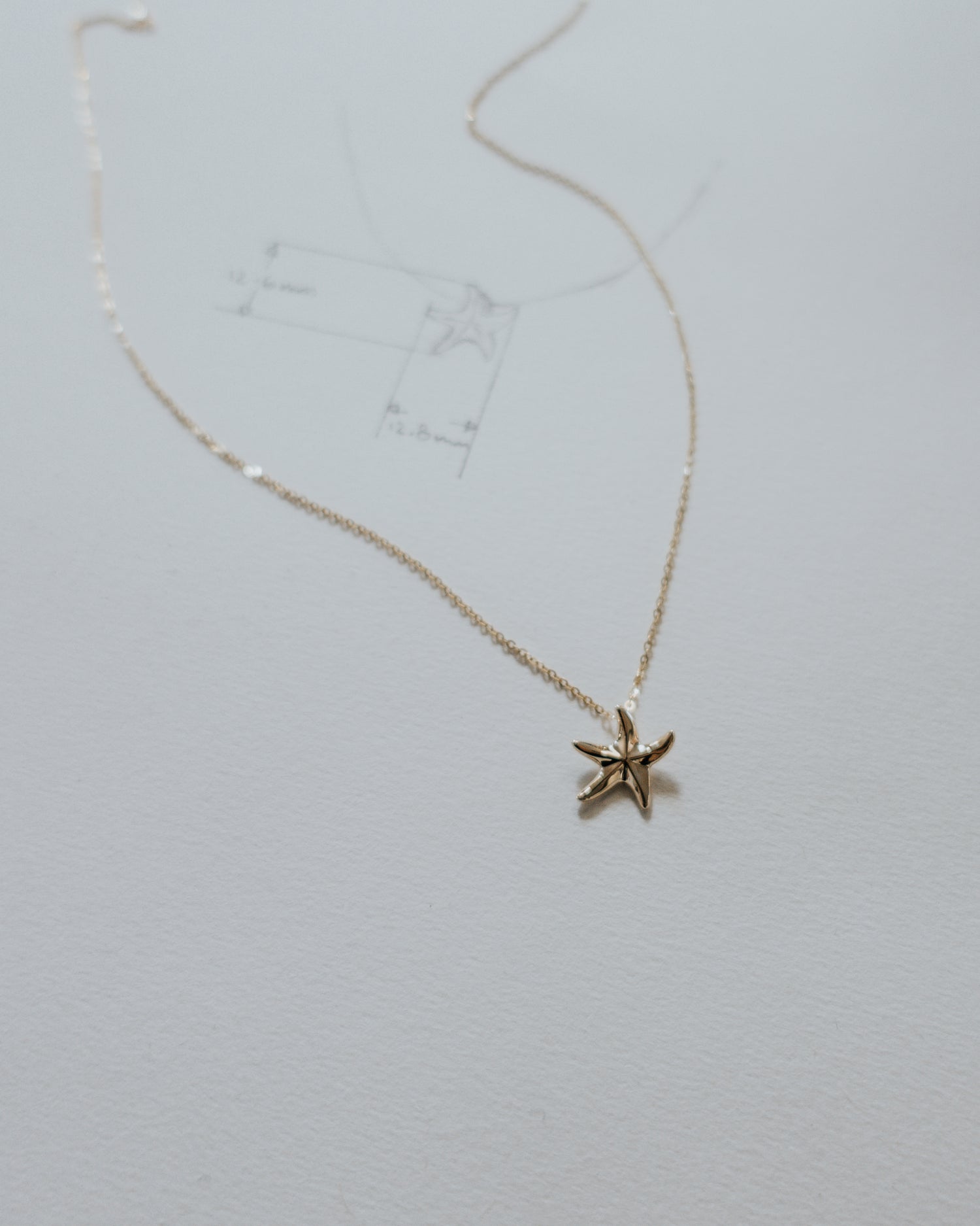 Sculpted in solid 18k yellow gold, this high-shine sea star necklace captures a sense of fluidity and calm strength. Long associated with renewal, resilience, and intuitive guidance, the sea star moves with grace—adapting, regenerating, and enduring.