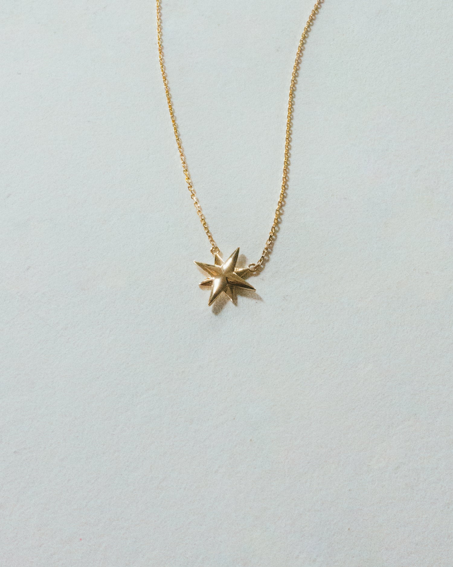 Crafted in solid 18k yellow gold, this Northern Star necklace is designed as a symbol of strength, guidance, and quiet resilience. The sculptural star form is refined and intentional, catching light softly while maintaining a sense of grounded presence.