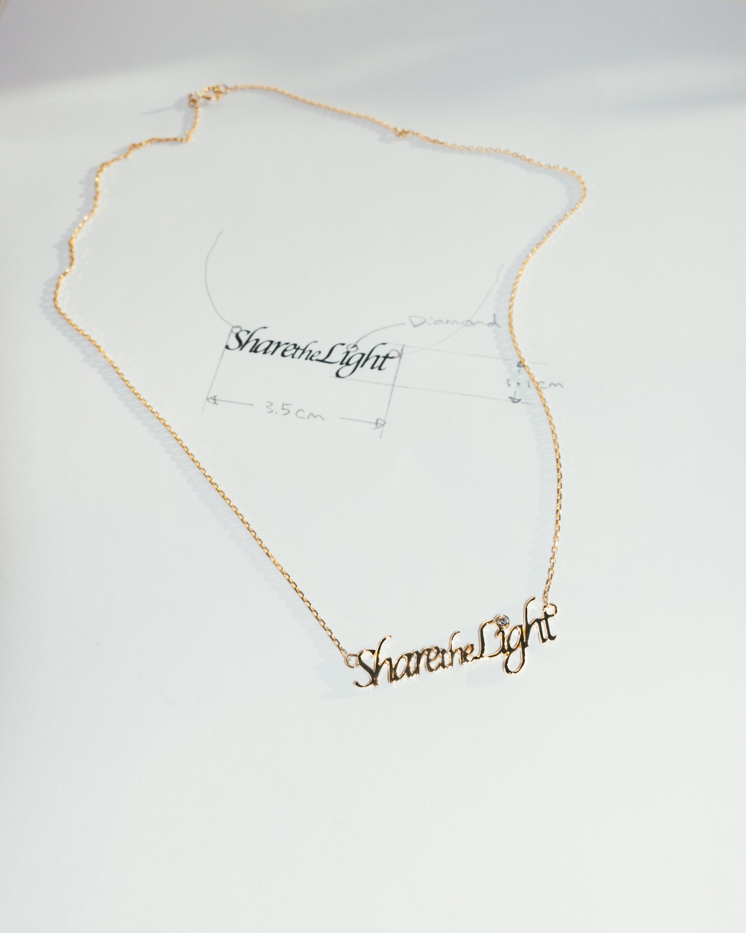 Created for a remarkable individual known for sharing light and positivity, this custom necklace was designed as a reflection of her spirit. Handcrafted in solid 18k yellow gold, the piece features fluid lettering accented with a subtle diamond embellishment—adding a quiet shimmer that echoes the warmth it represents.