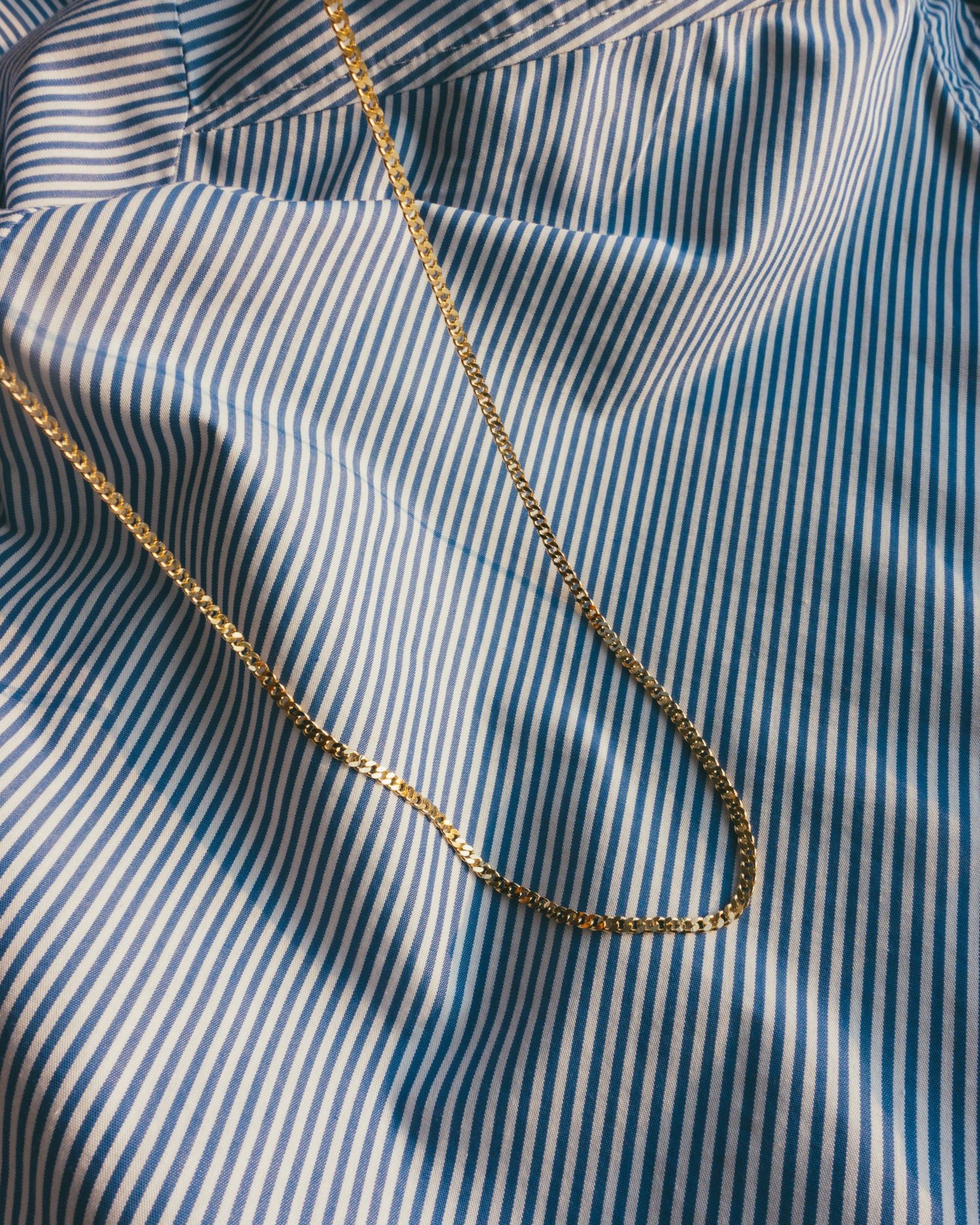 Crafted in solid 14k yellow gold, this custom curb chain was designed with quiet confidence in mind. Each link is meticulously formed and finished to create a fluid, weighty drape—subtle in expression yet unmistakable in presence.