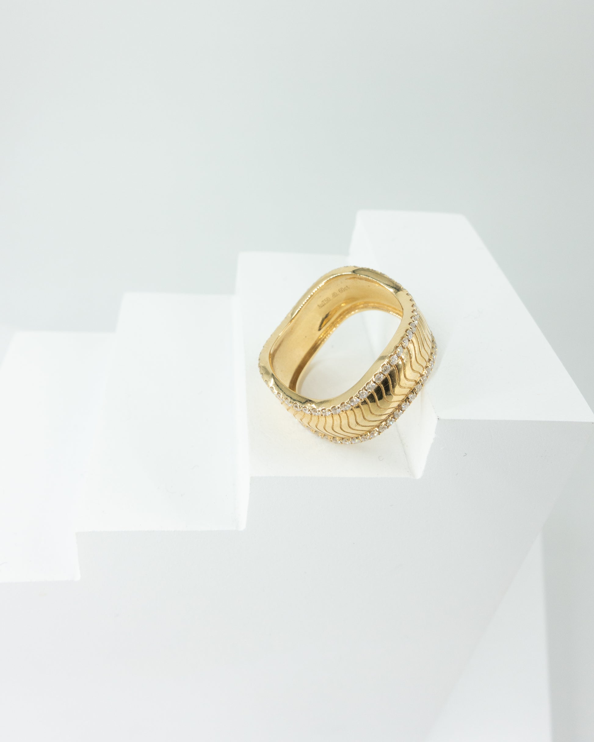- 18k solid yellow gold featuring handcrafted waves on the ring band
